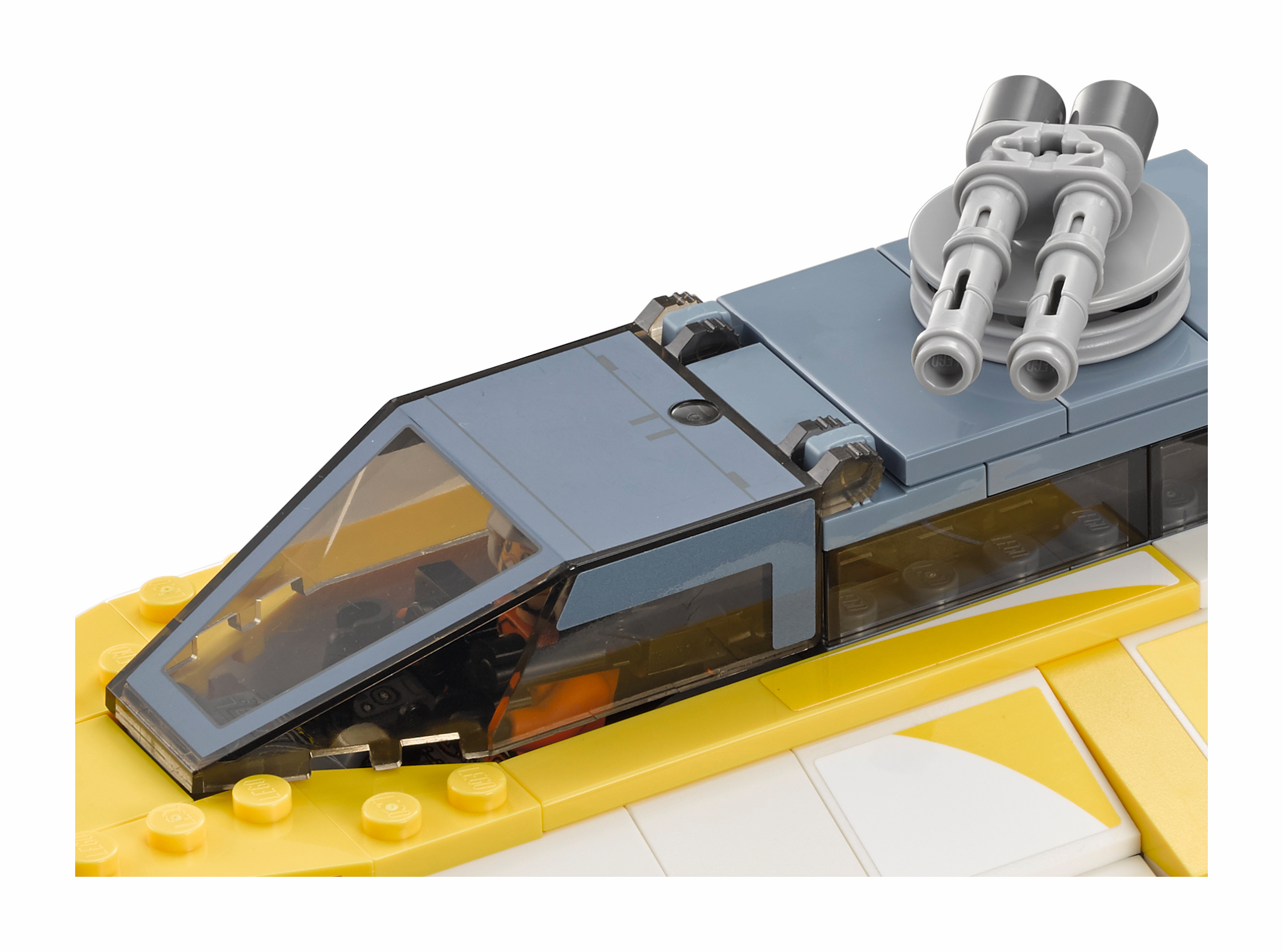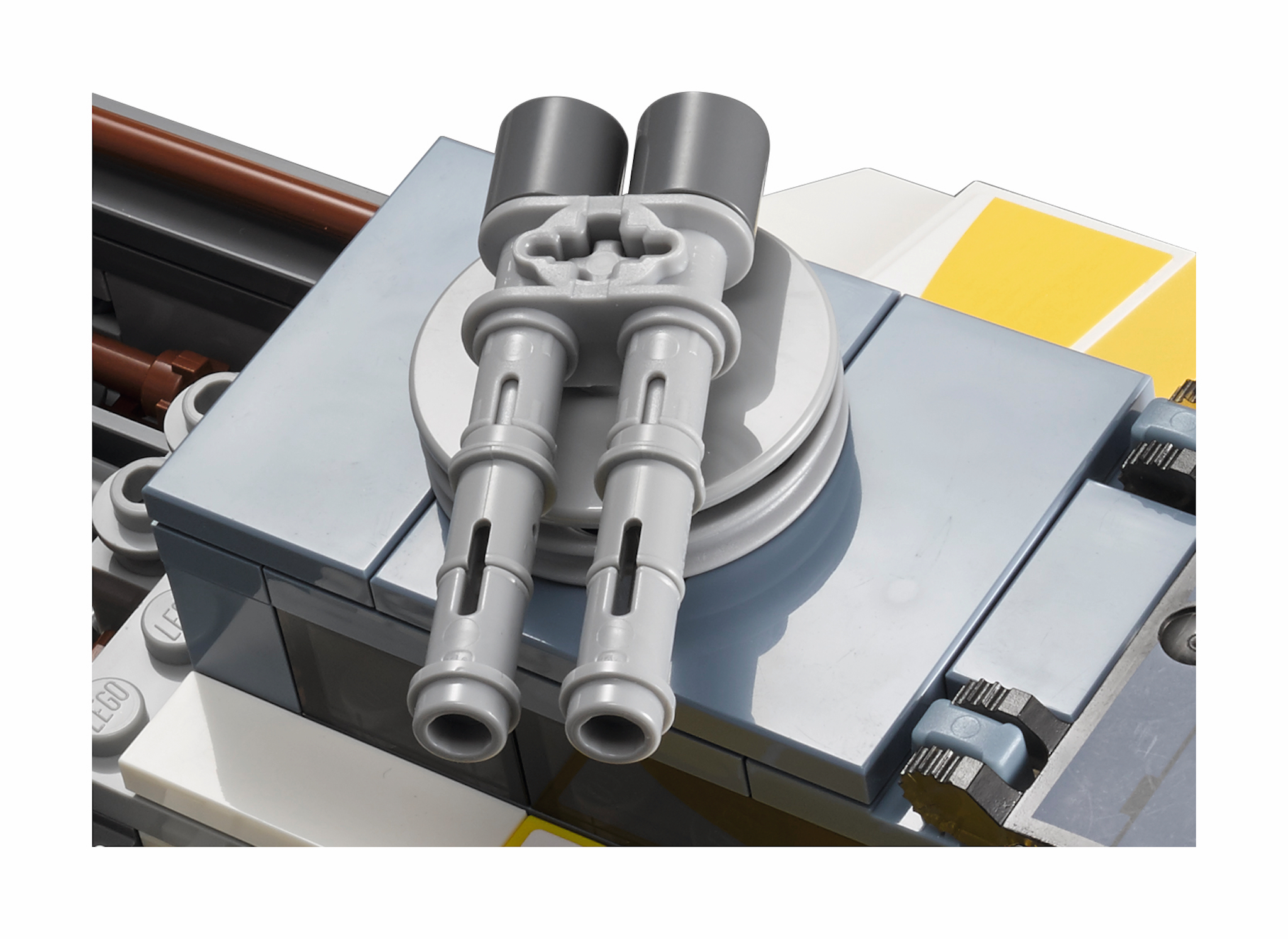 • Dotato di dettagli altamente autentici, cabina di pilotaggio per minifigure apribile, cannoni ionici rotanti, attivati tramite ingranaggio, sulla parte superiore, pattini di atterraggio retrattili e spazio per il droide astromeccanico R2-BHD incluso.