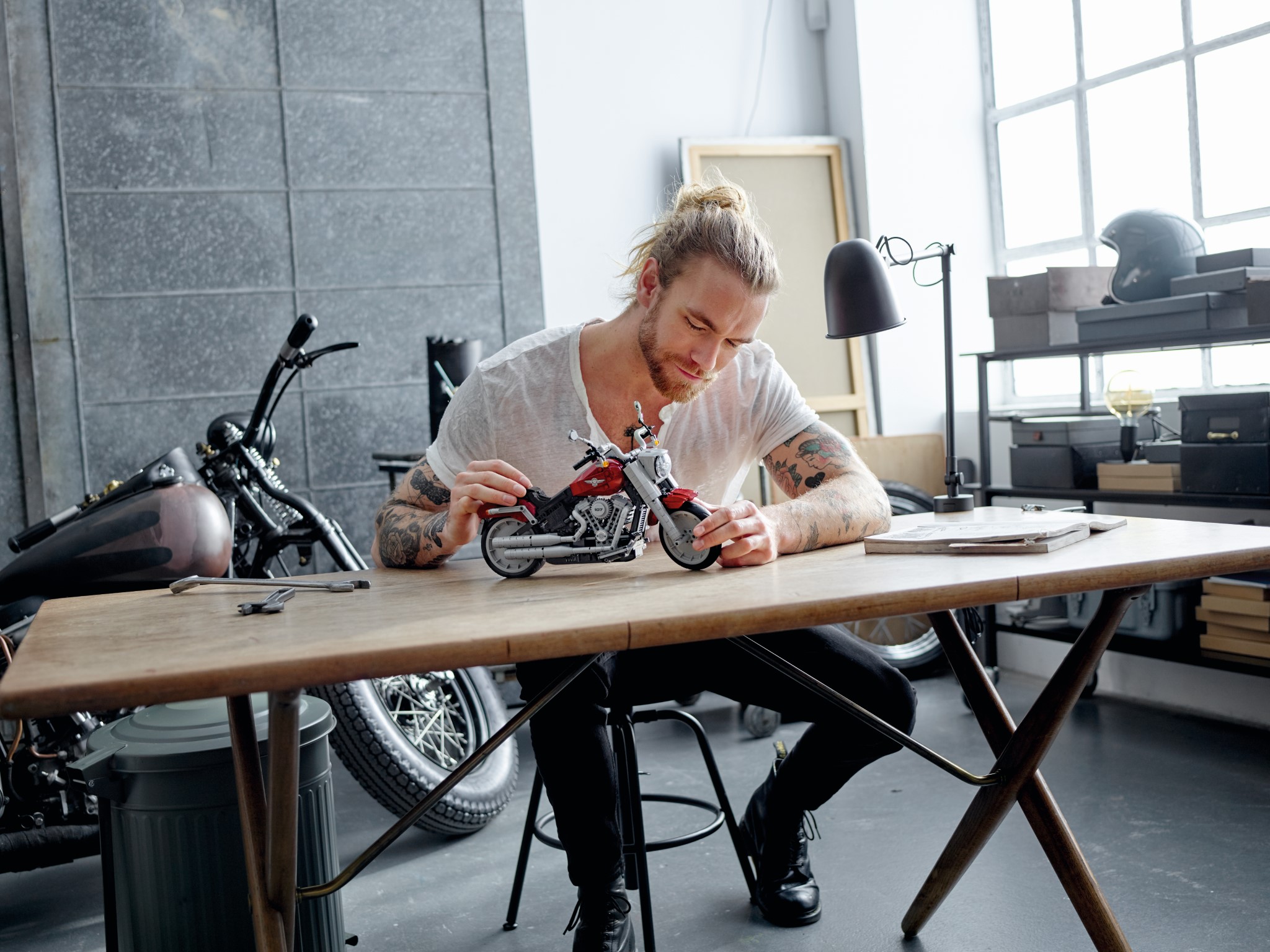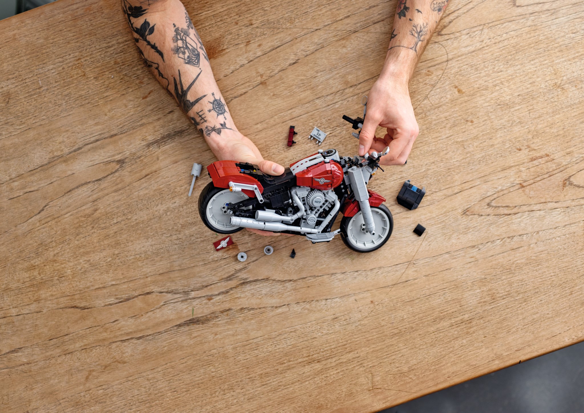 Sviluppata in collaborazione con Harley-Davidson, questa dettagliata interpretazione LEGO dell’iconica moto Milwaukee cattura la bellezza del veicolo reale con finiture, superfici ed elementi di design creati per replicare la Fat Boy Harley-Davidson a grandezza naturale.