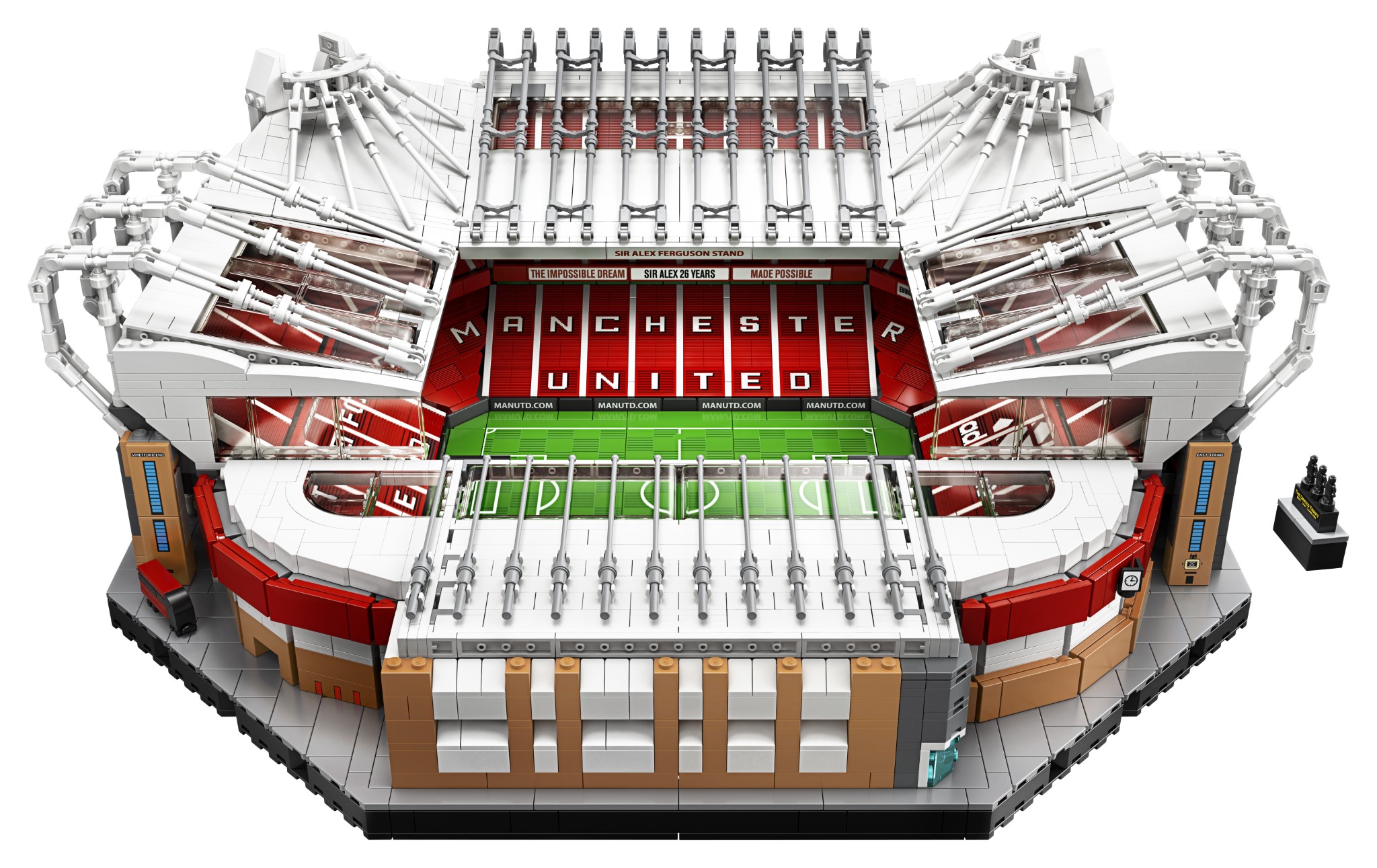 - Un kit di costruzione di un modello di replica 1:600 dell’Old Trafford. Questo stadio di calcio LEGO® offre un progetto divertente e gratificante e consente ai fan di rivivere i loro preziosi ricordi del Manchester United con questo modello dettagliato.