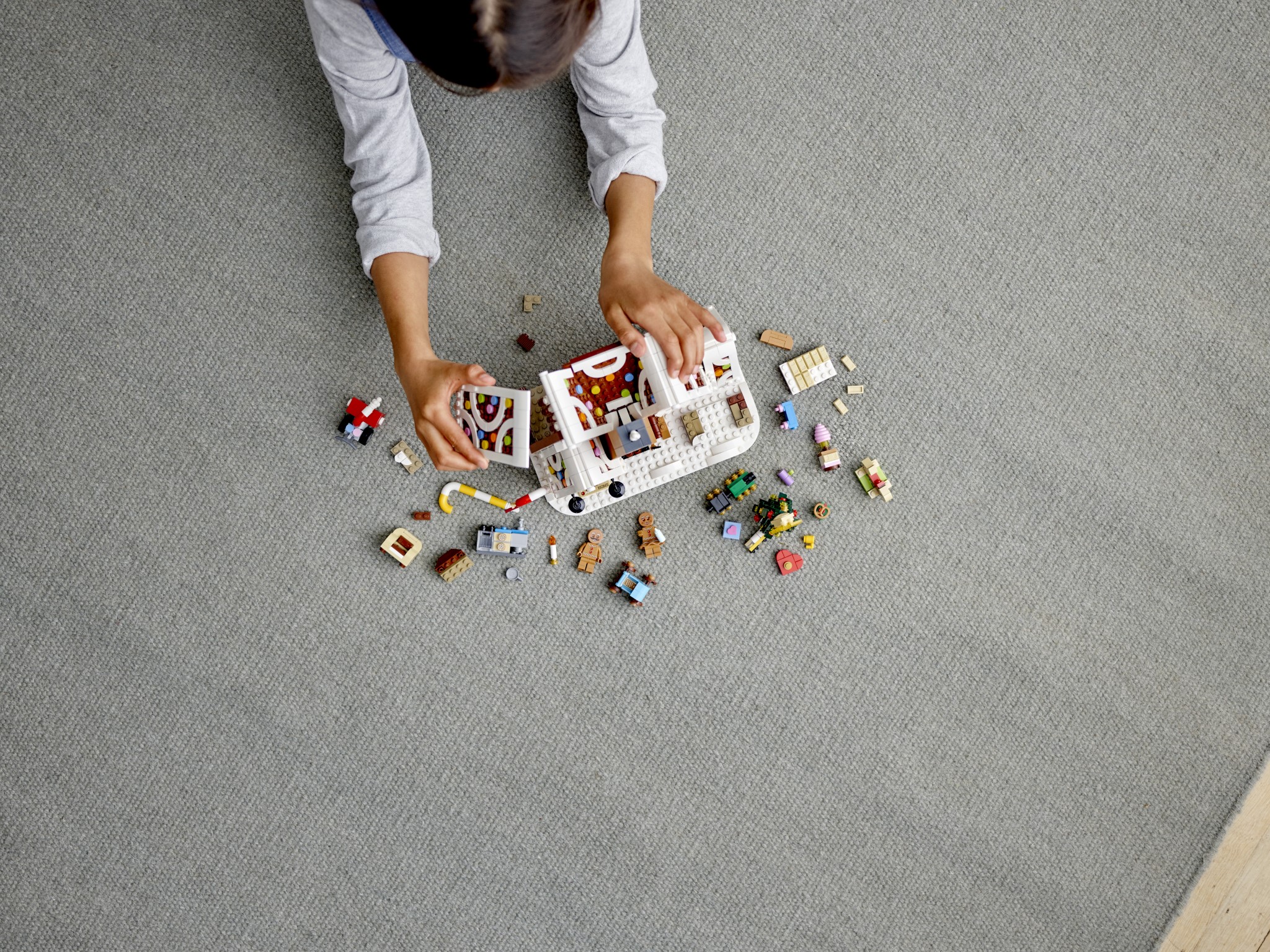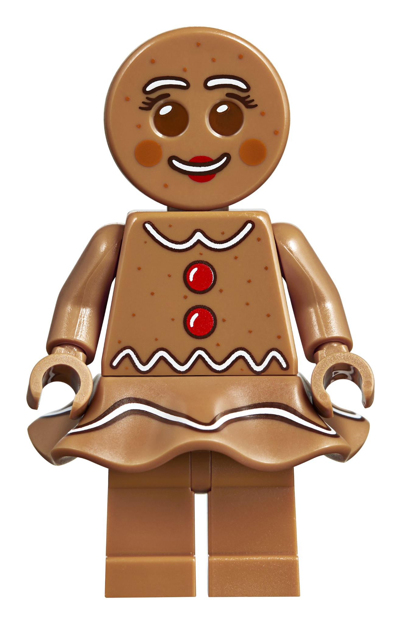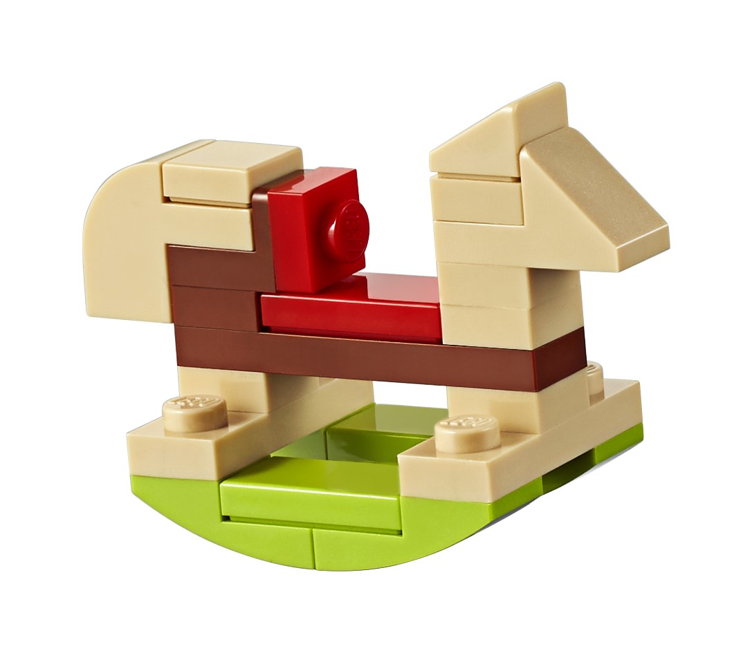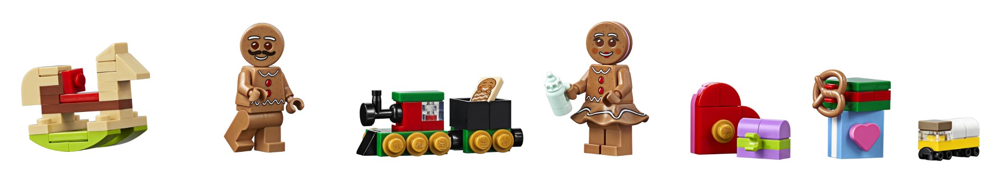 Il set da 1.477 pezzi misura 21 cm di altezza, 26 cm di larghezza e 13 cm di profondità, dove trova spazio la famiglia di marzapane, composta da papà e mamma di marzapane con il loro piccolo. Questo set festivo include un nuovo lingotto d’oro per il 2019 in marrone chiaro e mattoncini trasparenti trasparenti 1×1 viola.