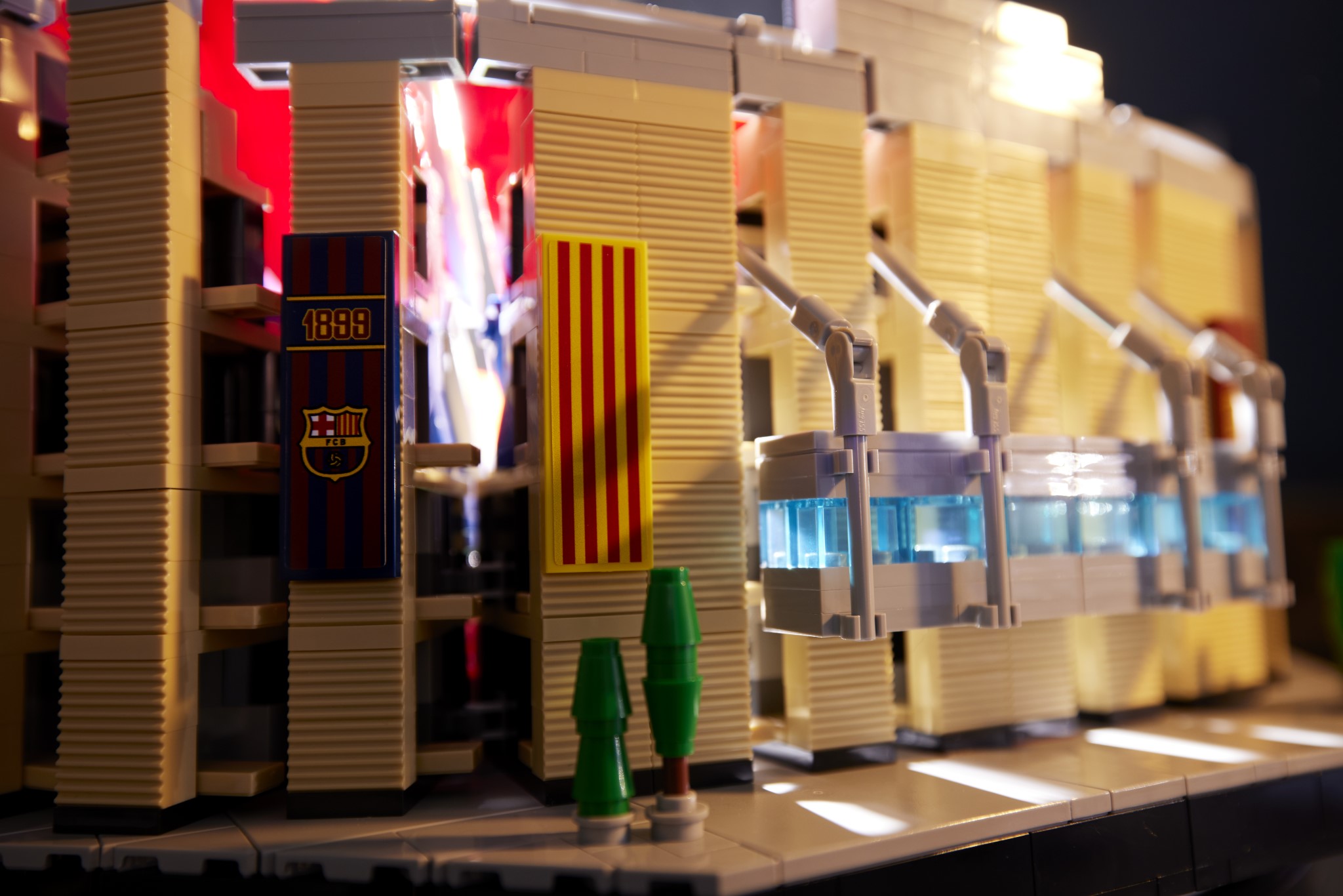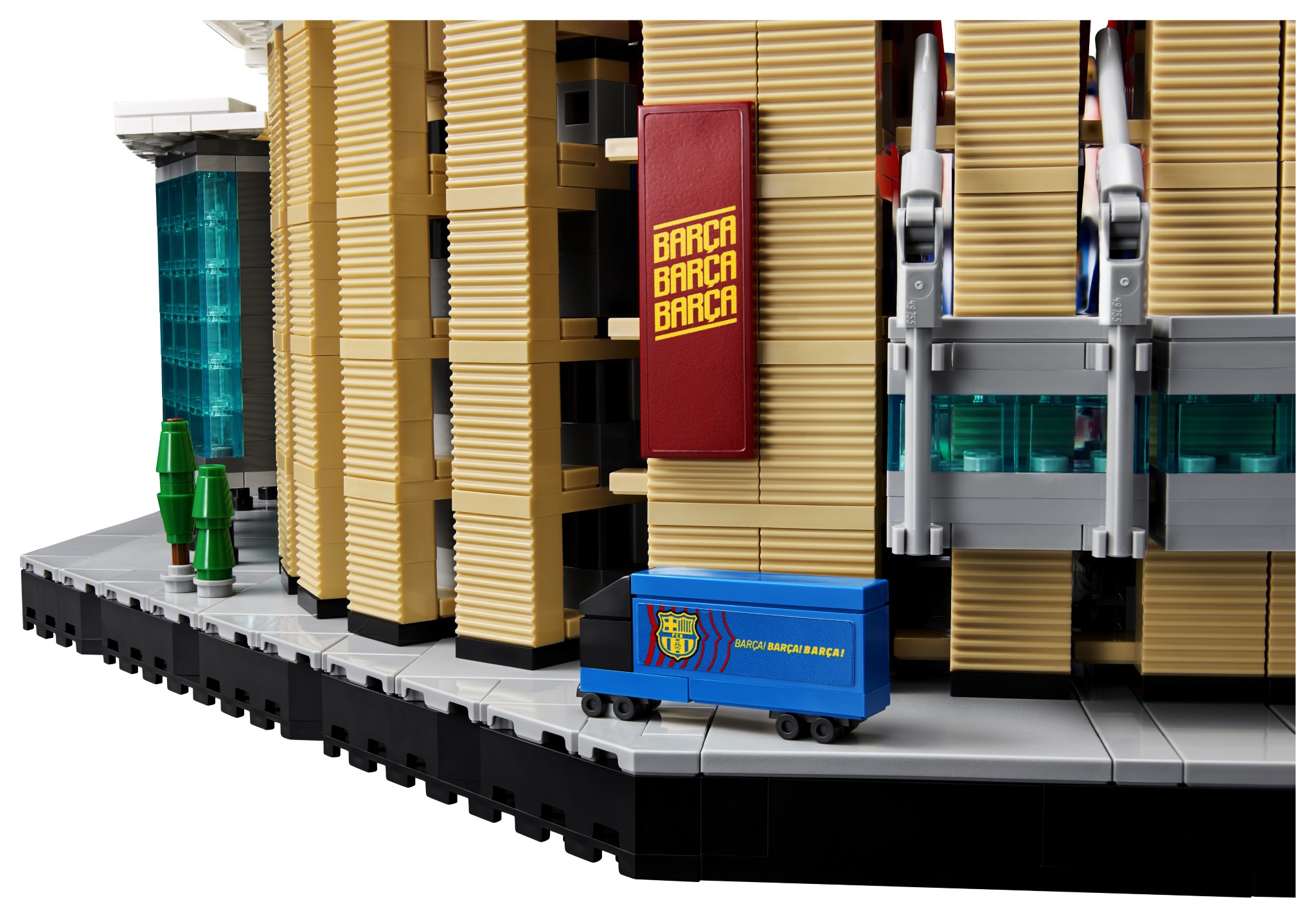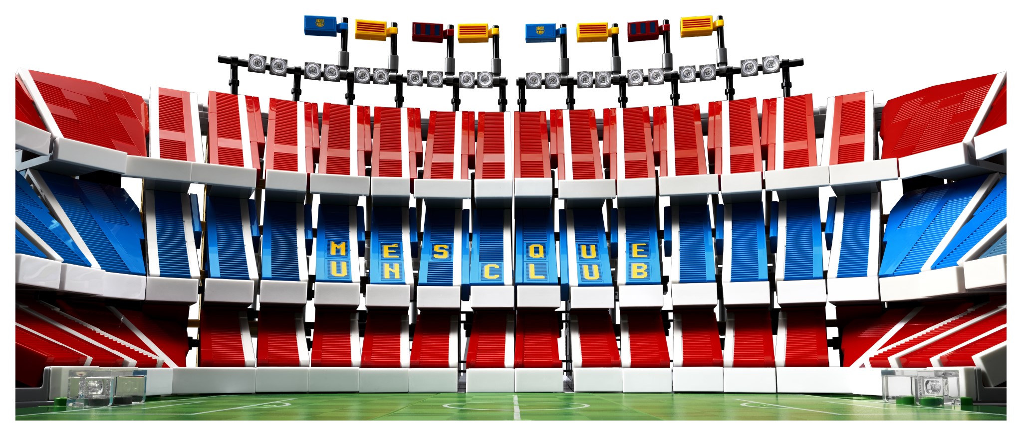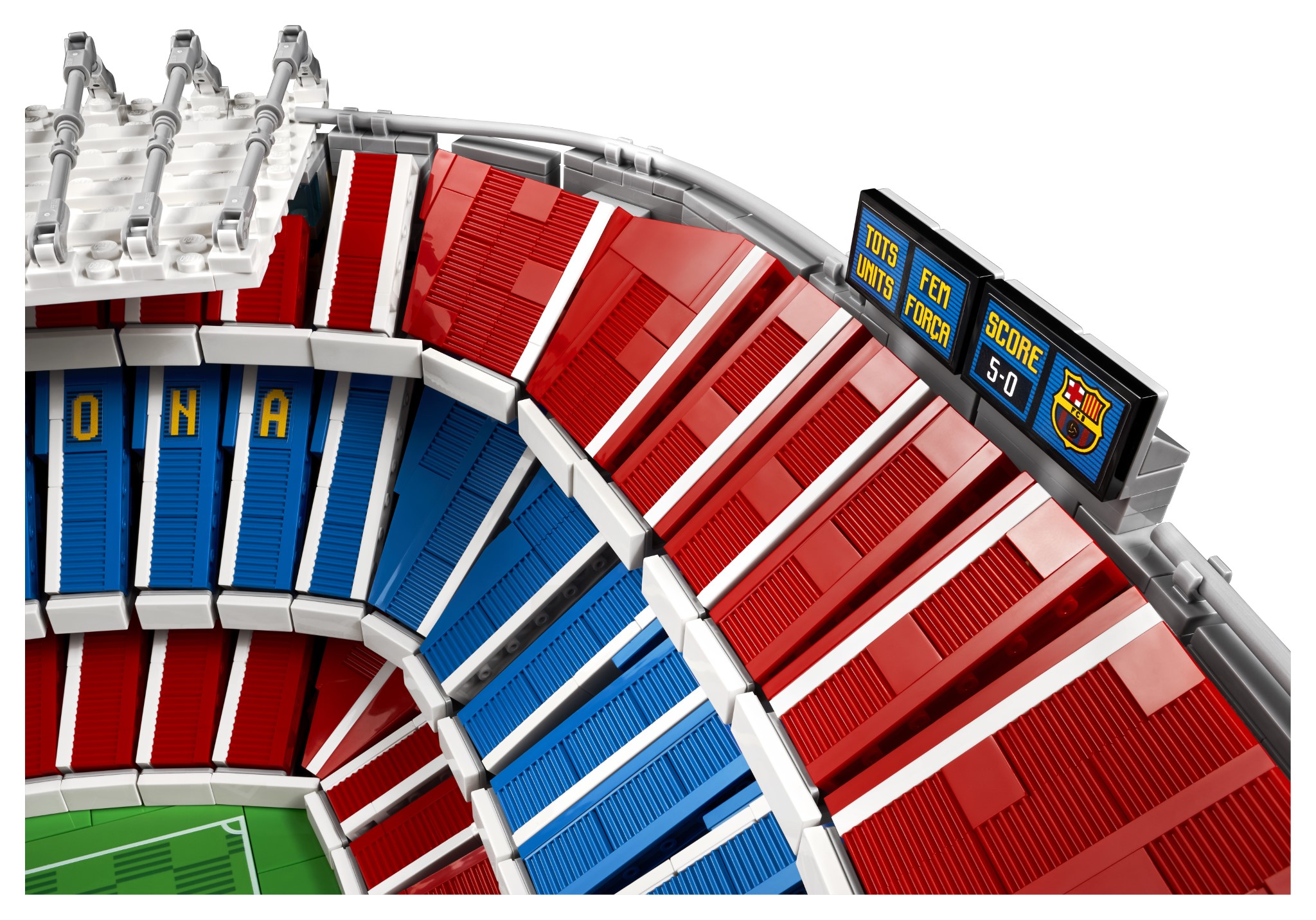 Il set riproduce nel dettaglio l’intero campo da gioco, le tribune, il tunnel dei giocatori e persino l’allenatore della squadra. Presenti anche il tabellone, che fa riferimento alla storica vittoria del Club per 5-0 contro il Real Madrid, e il motto dell’FC Barcelona “Més que un Club”, orgogliosamente esposto sugli spalti.