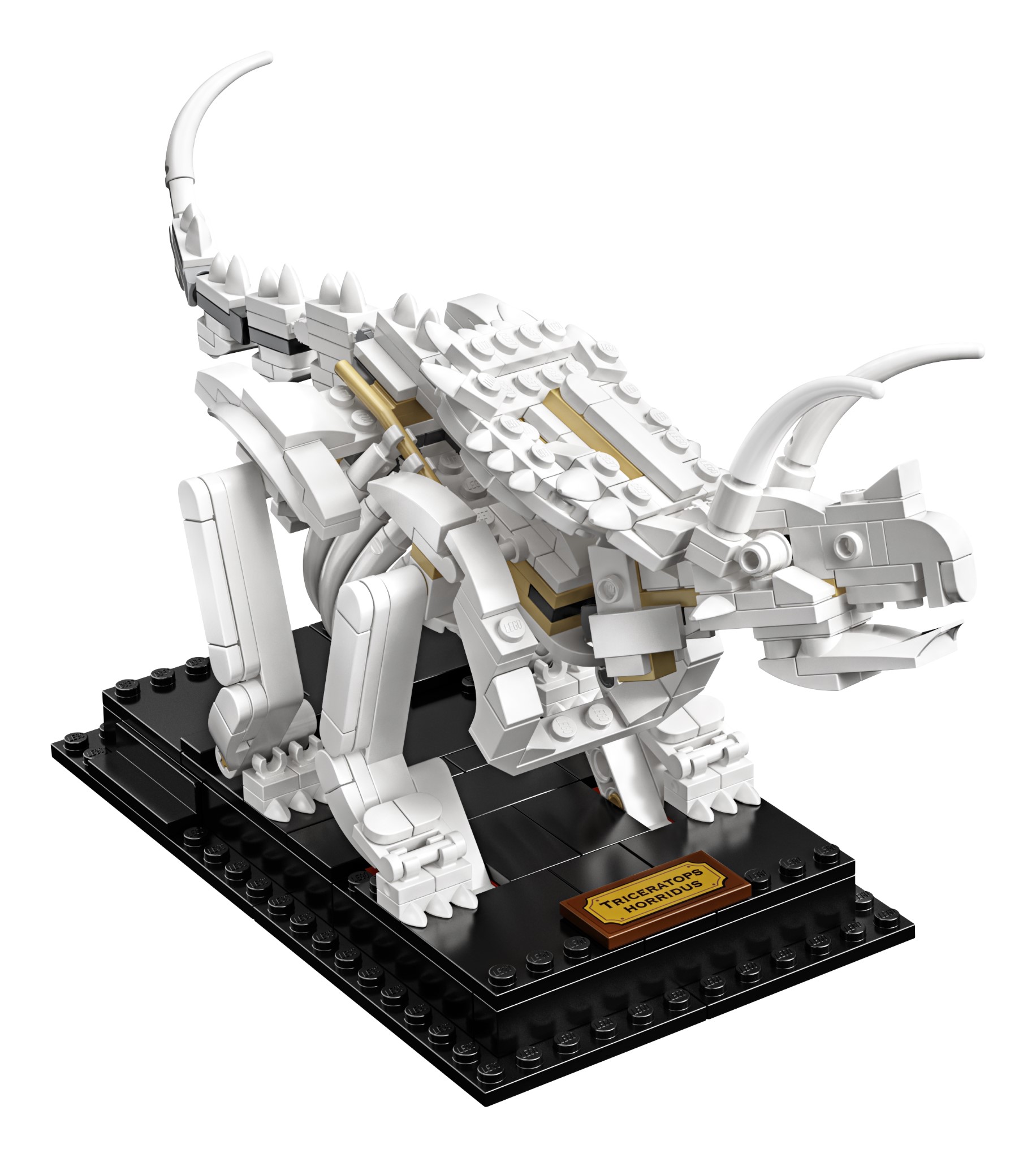 - Un set con modelli di fossili di dinosauri meravigliosamente dettagliati e snodabili, in scala 1:32, tra cui un Tirannosauro, un Triceratopo e uno Pteranodonte, ciascuno con espositori per creare il tuo museo di storia naturale in stile LEGO®.
