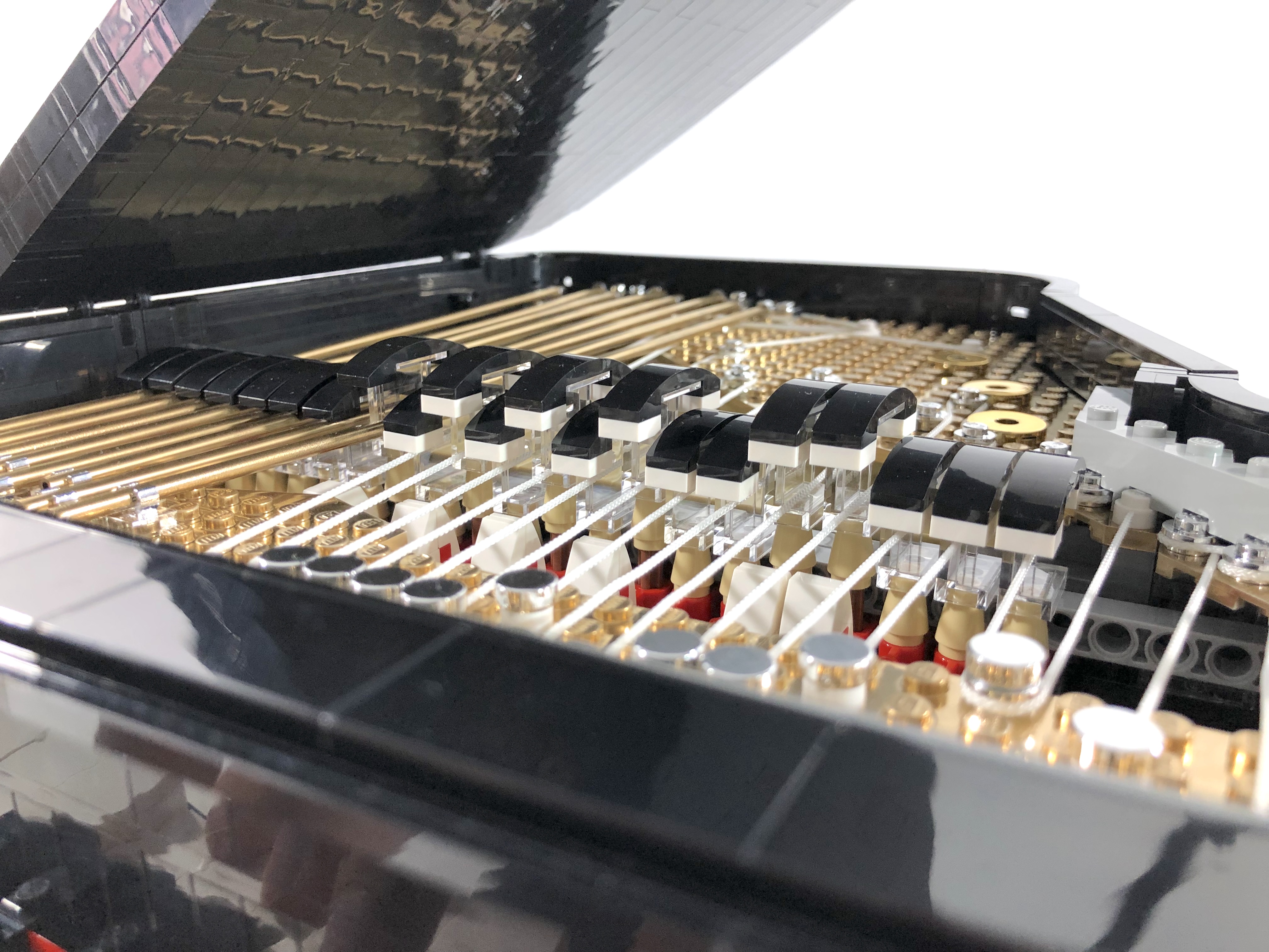 Questa meravigliosa riproduzione di un pianoforte da concerto è costituita da ben 2.798 pezzi, e contiene un livello di dettaglio davvero strabiliante: i tasti sono addirittura funzionanti!