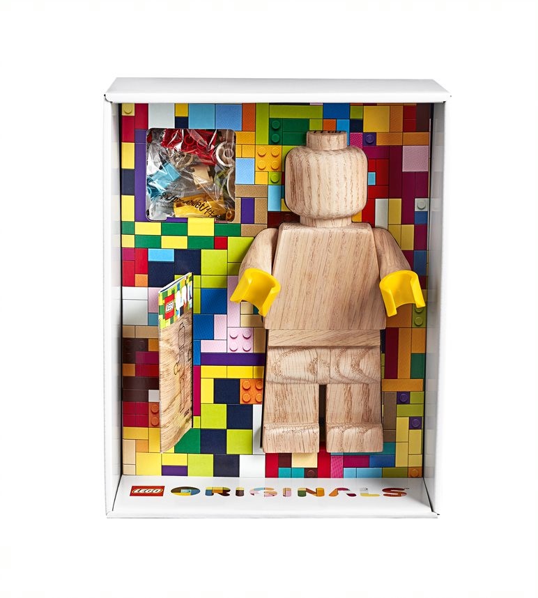 La minifigure in legno è in scala 5:1 ed è fornita in una confezione premium insieme a un opuscolo di 28 pagine con la storia delle minifigure LEGO.