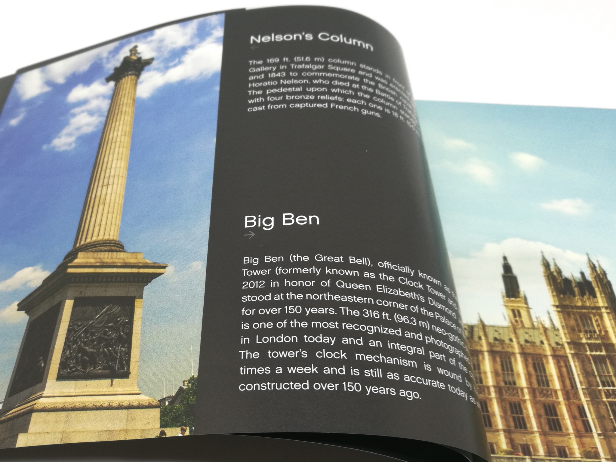 Ogni edificio è realizzato in scala con mattoncini i cui colori sono stati scelti accuratamente per farli assomigliare alle architetture reali, inoltre ci sono piccolissimi particolari sbalorditivi, come il ponte che si apre davvero, la piccola statua sopra alla colonna o le due fontane davanti alla National Gallery.
