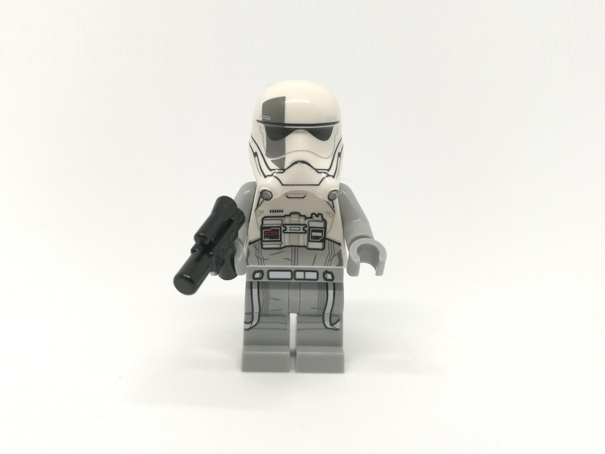 La minifigura è il pilota del Walker del Primo Ordine, dotato di un particolare casco con una traccia grigia sull’occhio destro. La faccia è quella classica utilizzata per i cloni Star Wars.