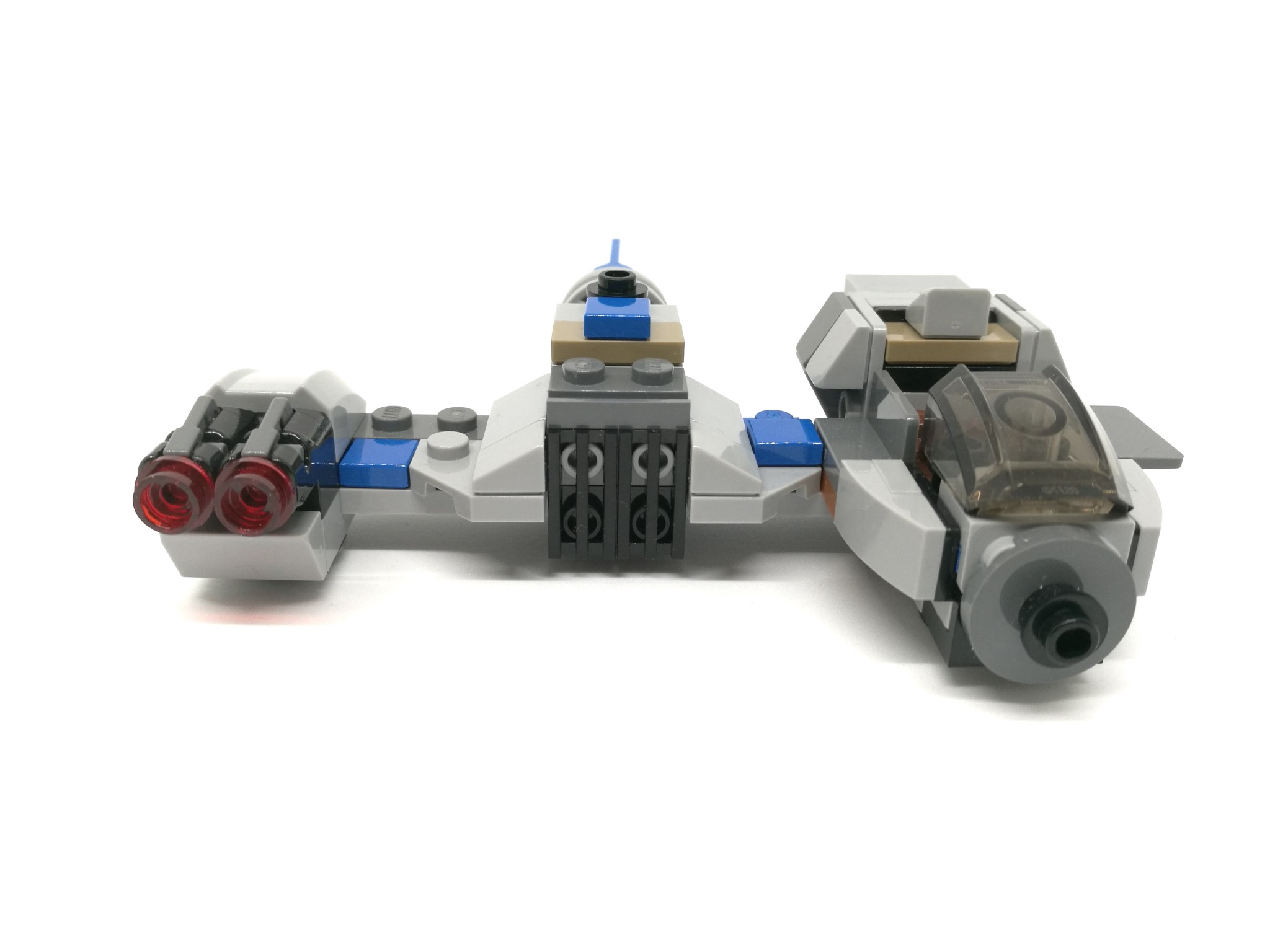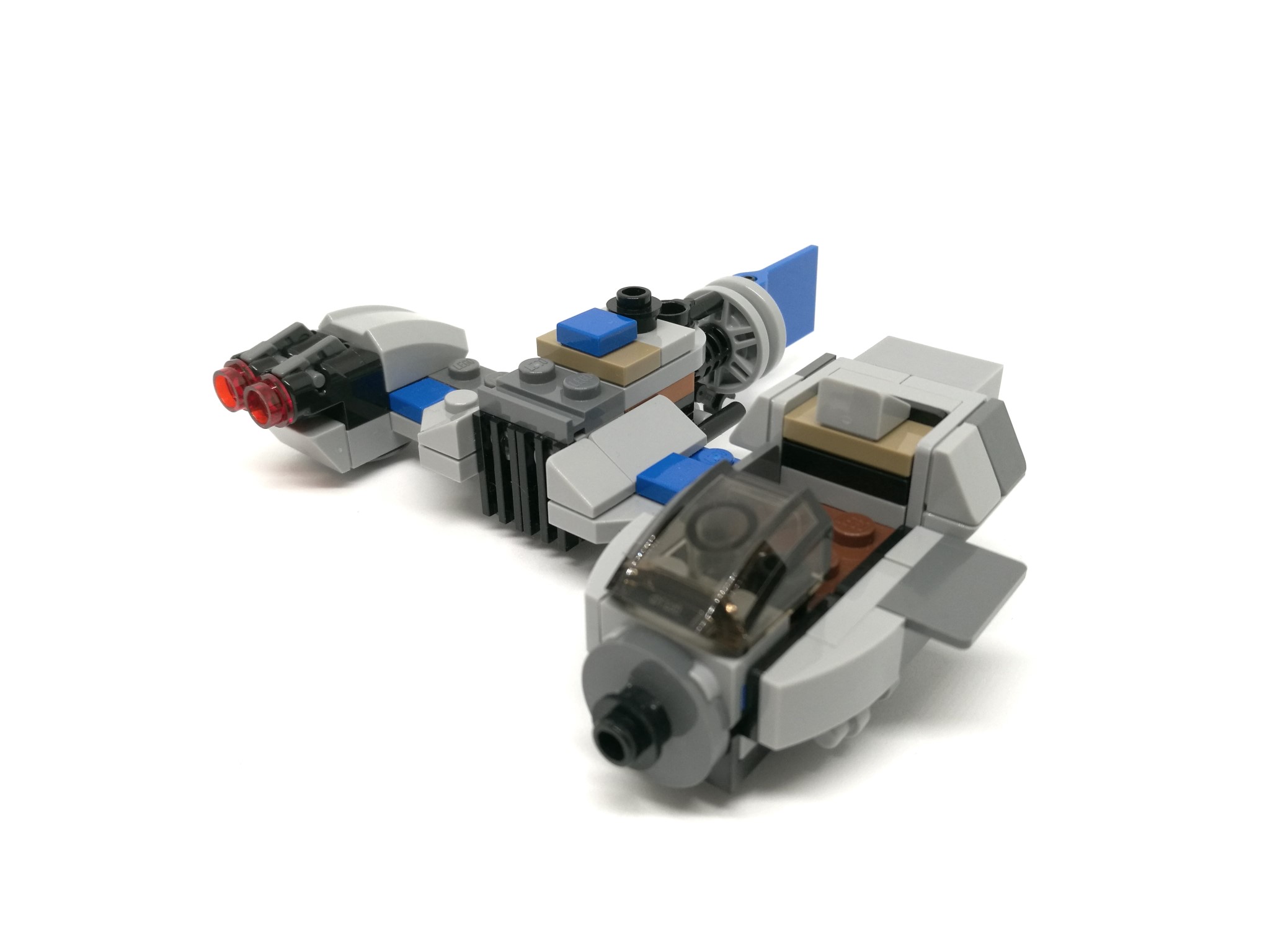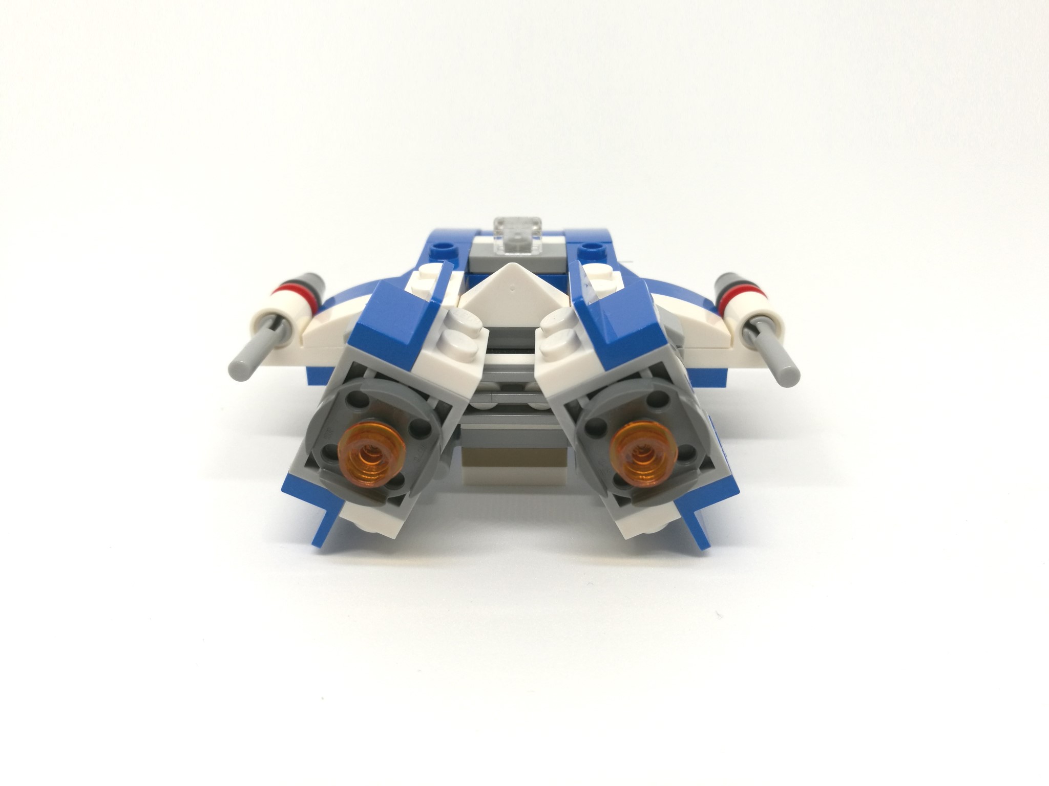 L’A-wing, dai colori bianco/azzurro, risulta essere molto compatto e dalla linea davvero aggressiva. Ai due lati sono montati due missili e il retro del veicolo sfoggia due motori con tanto di stud colorati. E’ inclusa anche una mini-stazione di manutenzione grigio/gialla.