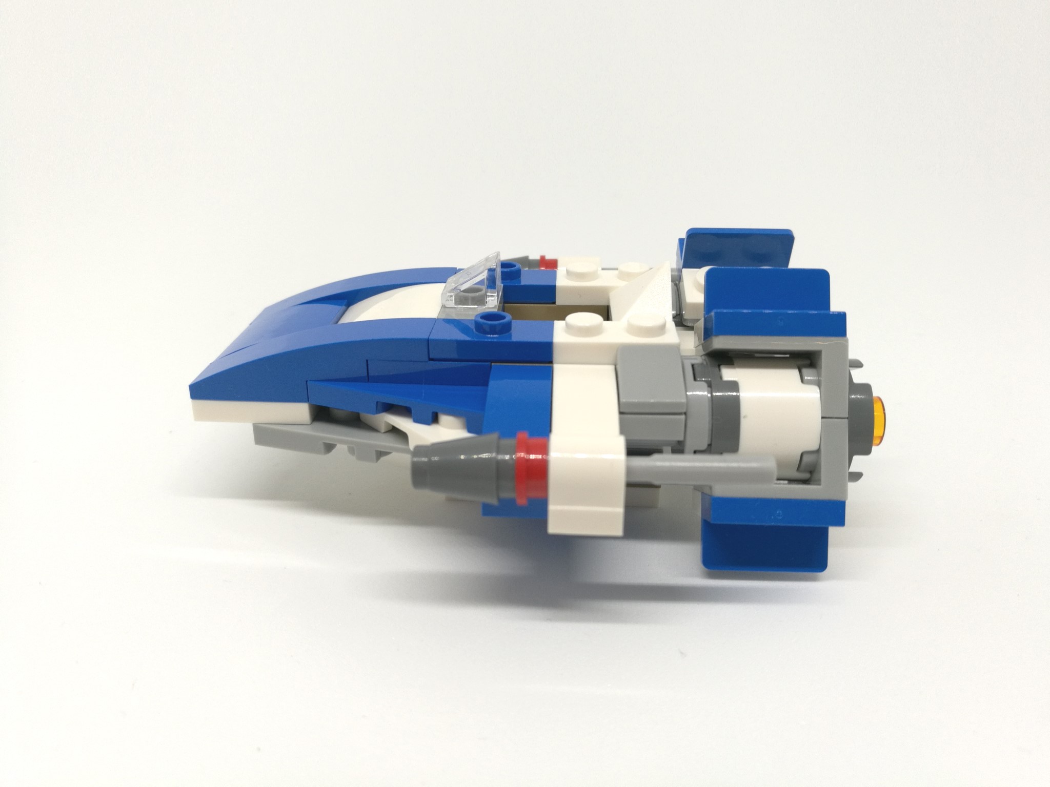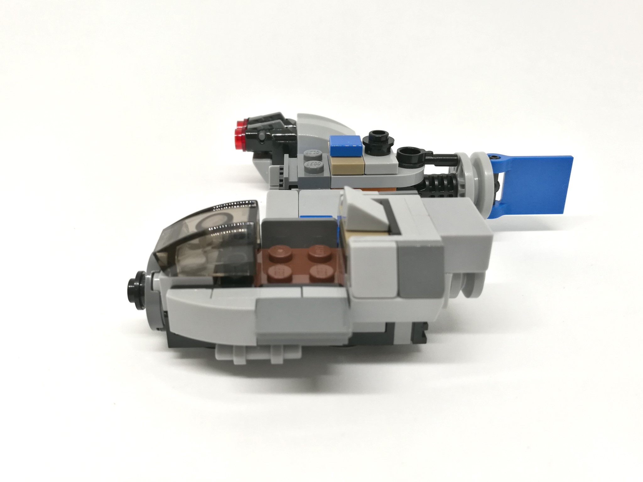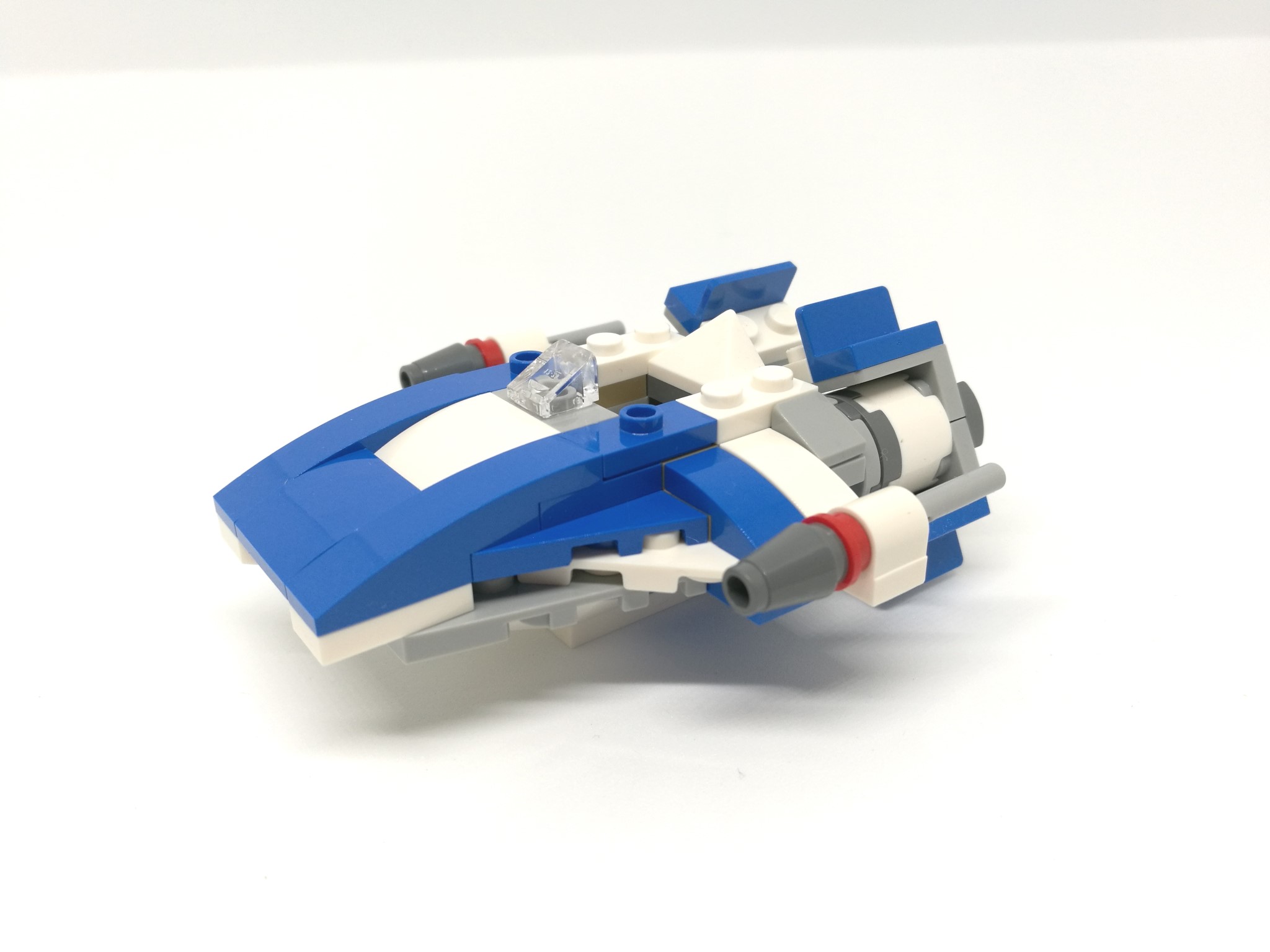 L’A-wing, dai colori bianco/azzurro, risulta essere molto compatto e dalla linea davvero aggressiva. Ai due lati sono montati due missili e il retro del veicolo sfoggia due motori con tanto di stud colorati. E’ inclusa anche una mini-stazione di manutenzione grigio/gialla.