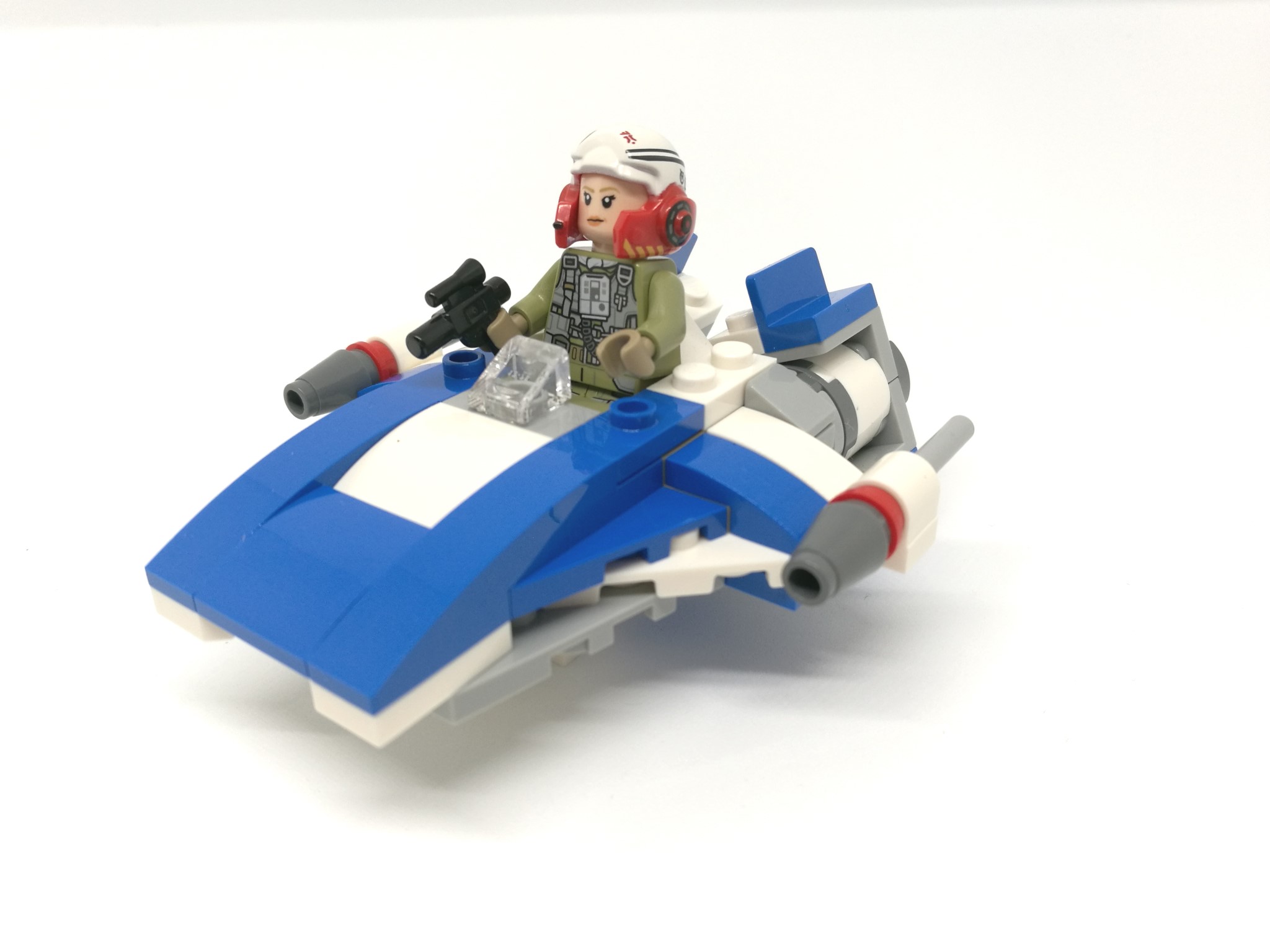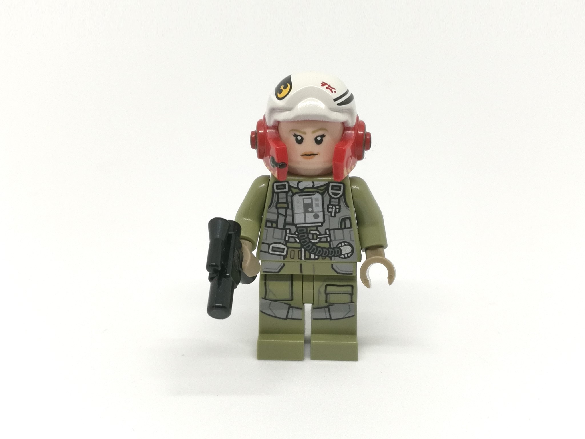 La minifigura inclusa è una donna pilota dell’A-Wing, con un casco dettagliatissimo aperto sul davanti e dotato di due protezioni laterali rosse.